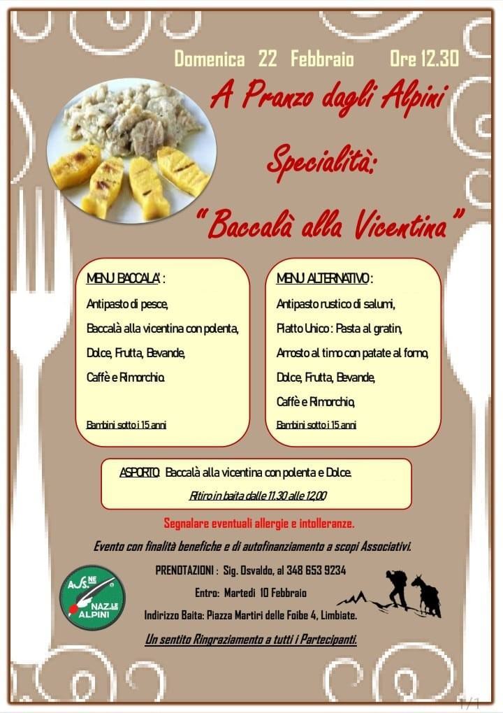 | Domenica 22 febbraio ore 12:30 Baccalà alla Vicentina In sedeLA LOCANDINA Clicca sull’immagine per ingrandire |